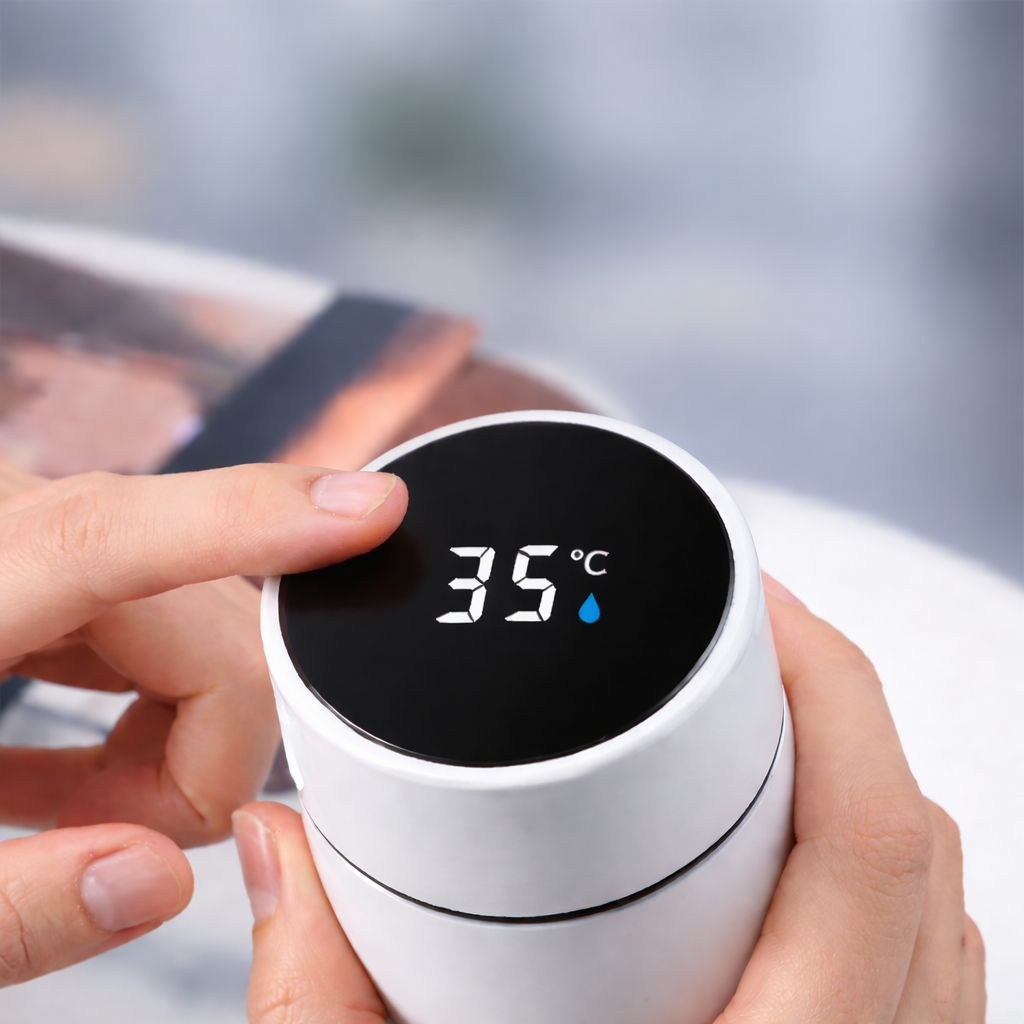 Simply tap the lid, and the digital display instantly shows the exact temperature of your drink.